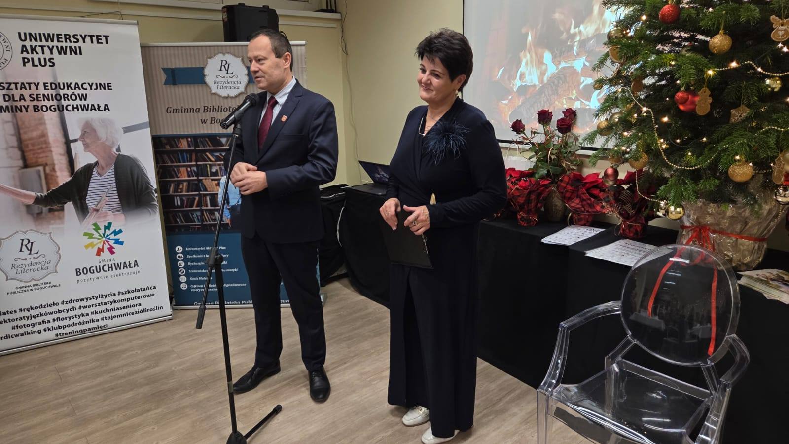 Spotkanie wigilijne Uniwersytetu Aktywni Plus w bibliotece w Boguchwale zgromadziło studentów i gości w ciepłej, świątecznej atmosferze, stając się uroczystym podsumowaniem XXIII semestru oraz okazją do podziękowania za wspólnie spędzony czas.