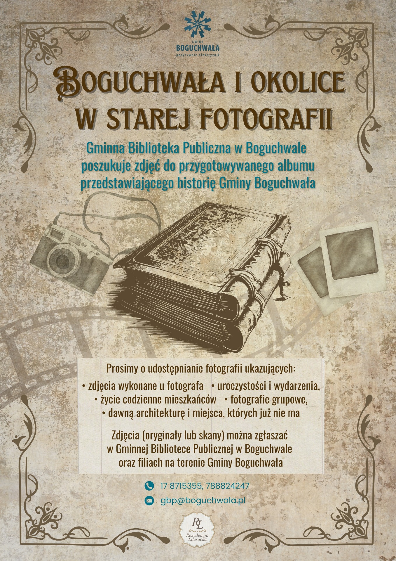 Gminna Biblioteka Publiczna w Boguchwale przygotowuje wyjątkowy album prezentujący historię naszej gminy. W związku z tym zwracamy się z prośbą o udostępnienie starych fotografii z Boguchwały i okolicznych miejscowości.