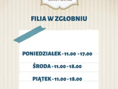 Nowe godziny otwarcia filii Zgłobień